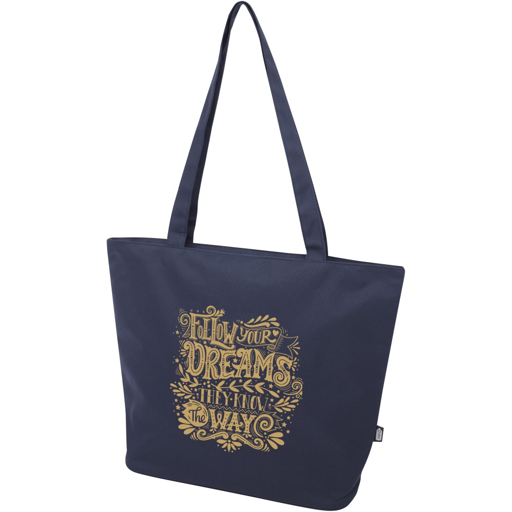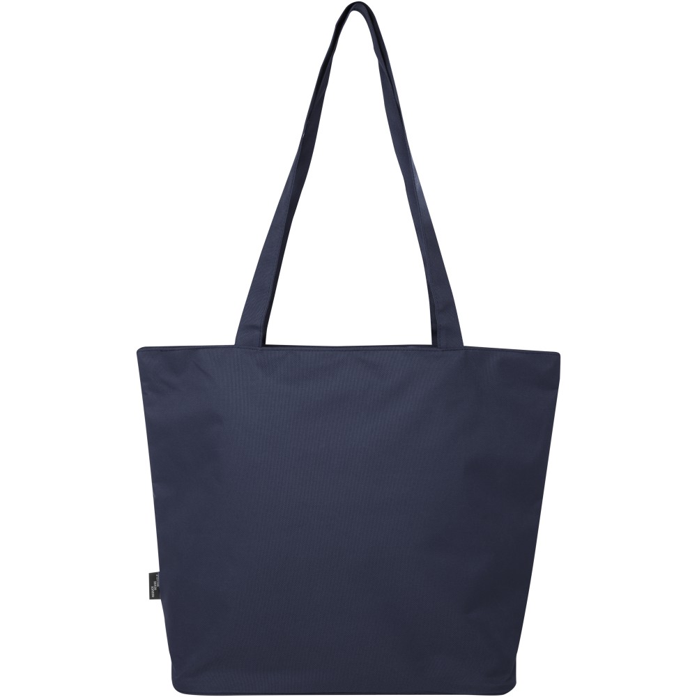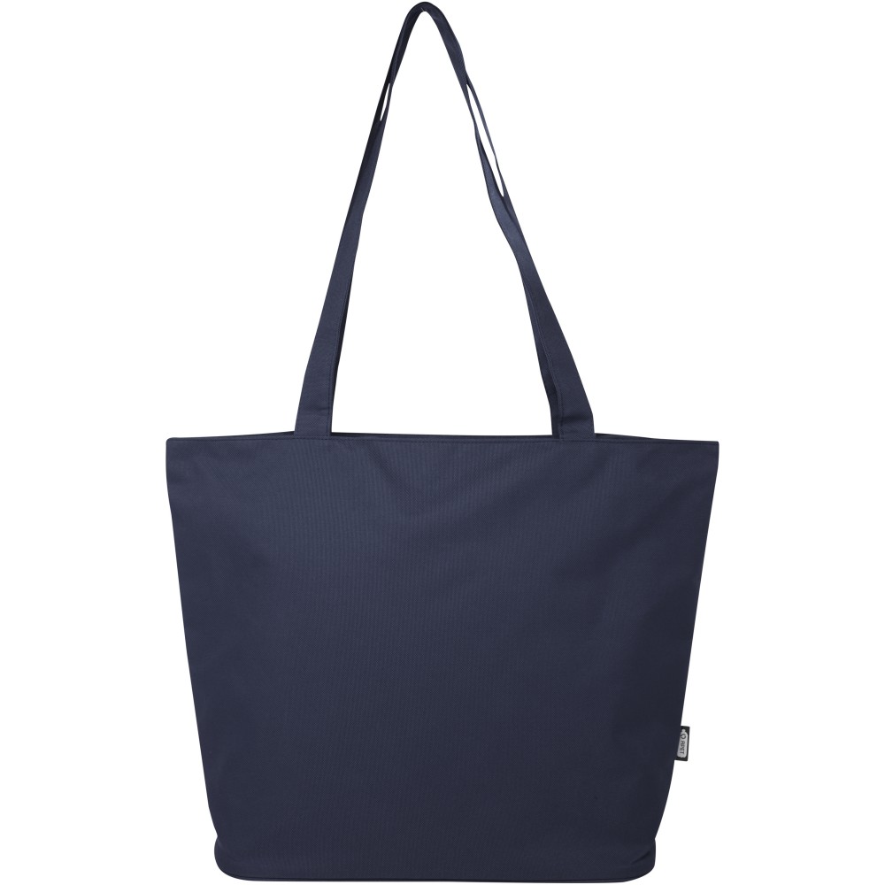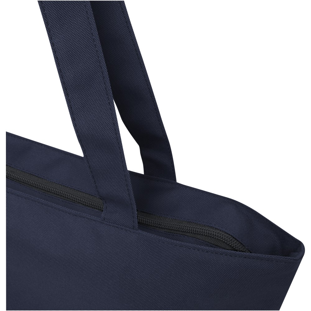 A vízlepergető 600D rPET anyagból készült Panama GRS újrahasznosított cipzáras táska tökéletes és fenntartható választás, ha rendezvényre, strandra vagy bevásárlásra készülsz. Egy cipzáras főrekesszel és egy cipzáras belső zsebbel rendelkezik, amely elég nagy a telefonod vagy más értékes holmi tárolására. Fülei 34 cm hosszúak, ezért a táska könnyen hordozható vállon. Teherbírás: 10 kg. PVC-mentes.