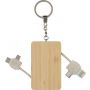 Töltőkábelek bambusz házban, kulcstartóval. Az egyik: USB-A/C, a másik: lightning/C-típusú. Csomagolása barna papírdoboz.