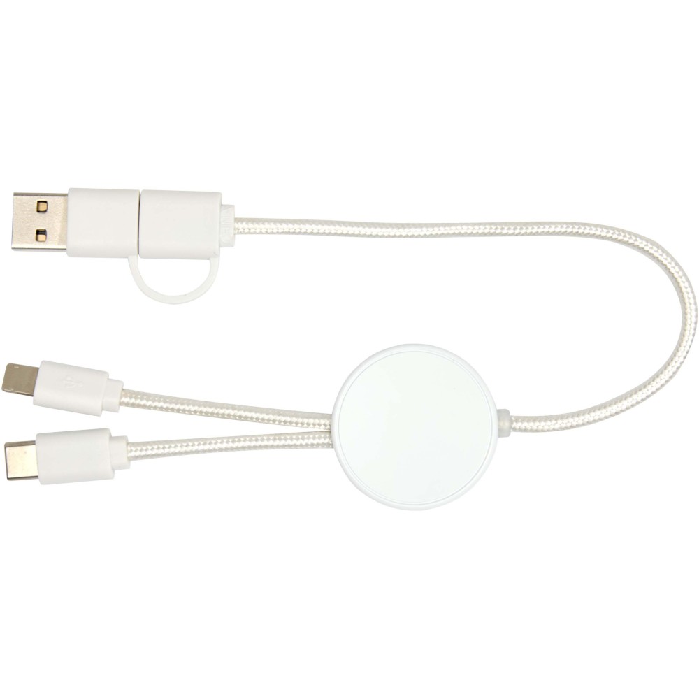 A Citala 5 az 1-ben adat- és 27W-os gyorstöltő kábel újrahasznosított műanyagból készült. A kábel USB-A és Type-C bemeneti csatlakozókkal, valamint Type-C és Lightning/Micro USB kombinált kimeneti csatlakozóval rendelkezik. Az USB-A?USB-C kapcsolat maximális teljesítménye 27W, míg az összes többi kapcsolat maximális teljesítménye 15W. Kompatibilis a CarPlay és az Android Auto rendszerekkel. Akár otthon, az irodában vagy útközben használod, a Citala kábel teljesítményt és stílust biztosít. Kábel hossza: 30 cm.