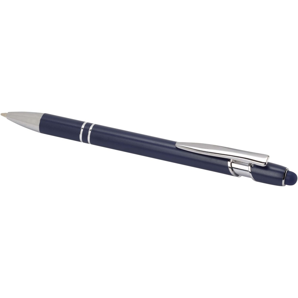 Kish golyóstoll ezüst színben. A toll teste újrahasznosított alumíniumból, az érintőceruza pedig szilikonból készült, így érintőképernyős eszközökhöz is használható. Az újrahasznosított alumínium csökkenti a hulladéklerakók terhelését, segít megőrizni a természeti erőforrásokat, és célja az üvegházhatású gázok kibocsátásának mérséklése. Tinta színe: kék. Íráshossz: 800 méter. Tollhegy mérete: 1,0 mm.