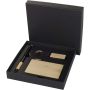 Minka ajándékszett RCS tanúsítvánnyal, újrahasznosított alumíniumból készült golyóstollal, amely stílusos bambusz markolattal és érintőképernyőkhöz használható stylus véggel van ellátva. A fekete tollbetét 1000 méteres íráshosszt biztosít. A készlet részét képezi továbbá egy bambusz díszítésű, integrált telefontartóval felszerelt alumínium kulcstartó (5,5 × 1,8 × 1 cm), valamint egy alumíniumötvözetből és bambuszból készült RFID kártyatartó (9,7 × 6,2 × 1 cm), amely akár 10 kártya számára nyújt védelmet. A termékeket egy elegáns, emblémázásra alkalmas fekete ajándékdobozban (16 × 16 × 2,7 cm) szállítjuk.