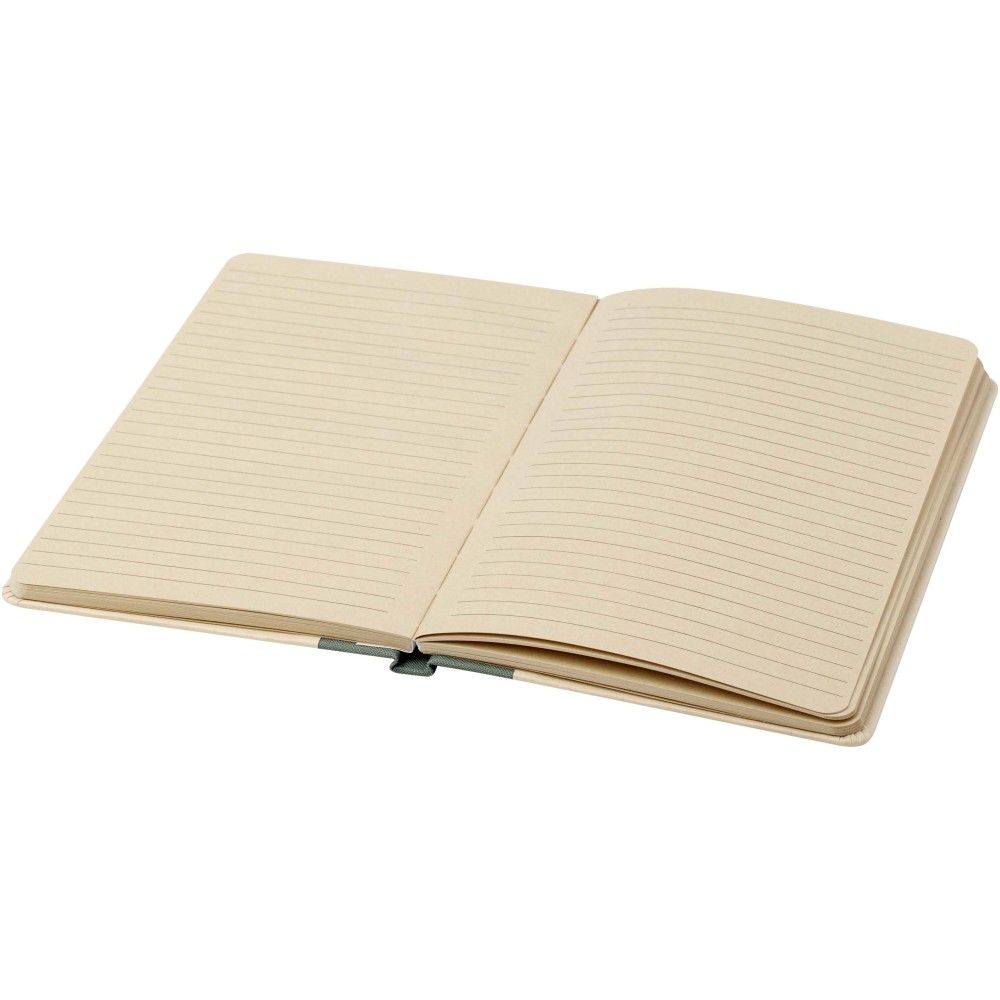A Liliana A5 keménytáblás jegyzetfüzet lekerekített sarkokkal és 80 vonalas, 90 g/m2-es lapokkal rendelkezik. A borító RPET-ből és cukornádból készült.