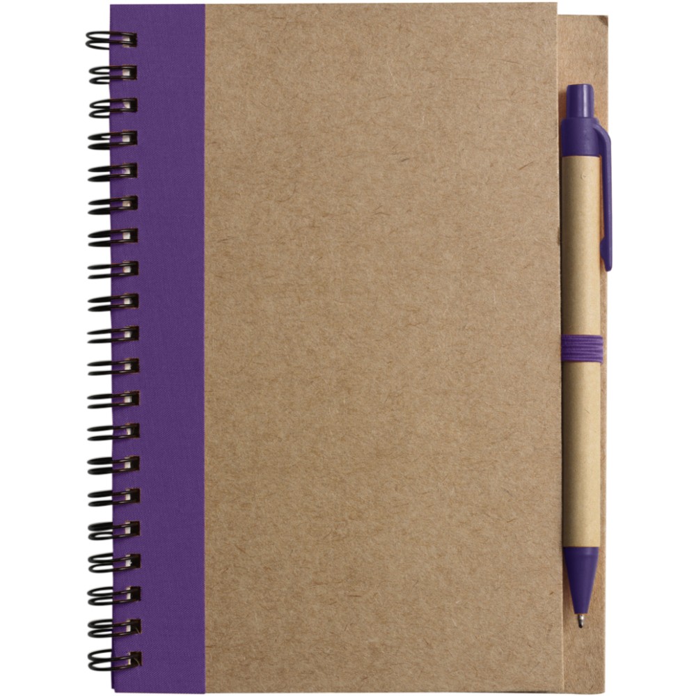 Újrahasznosított spirálfüzet tollal, 60 lapos, lila