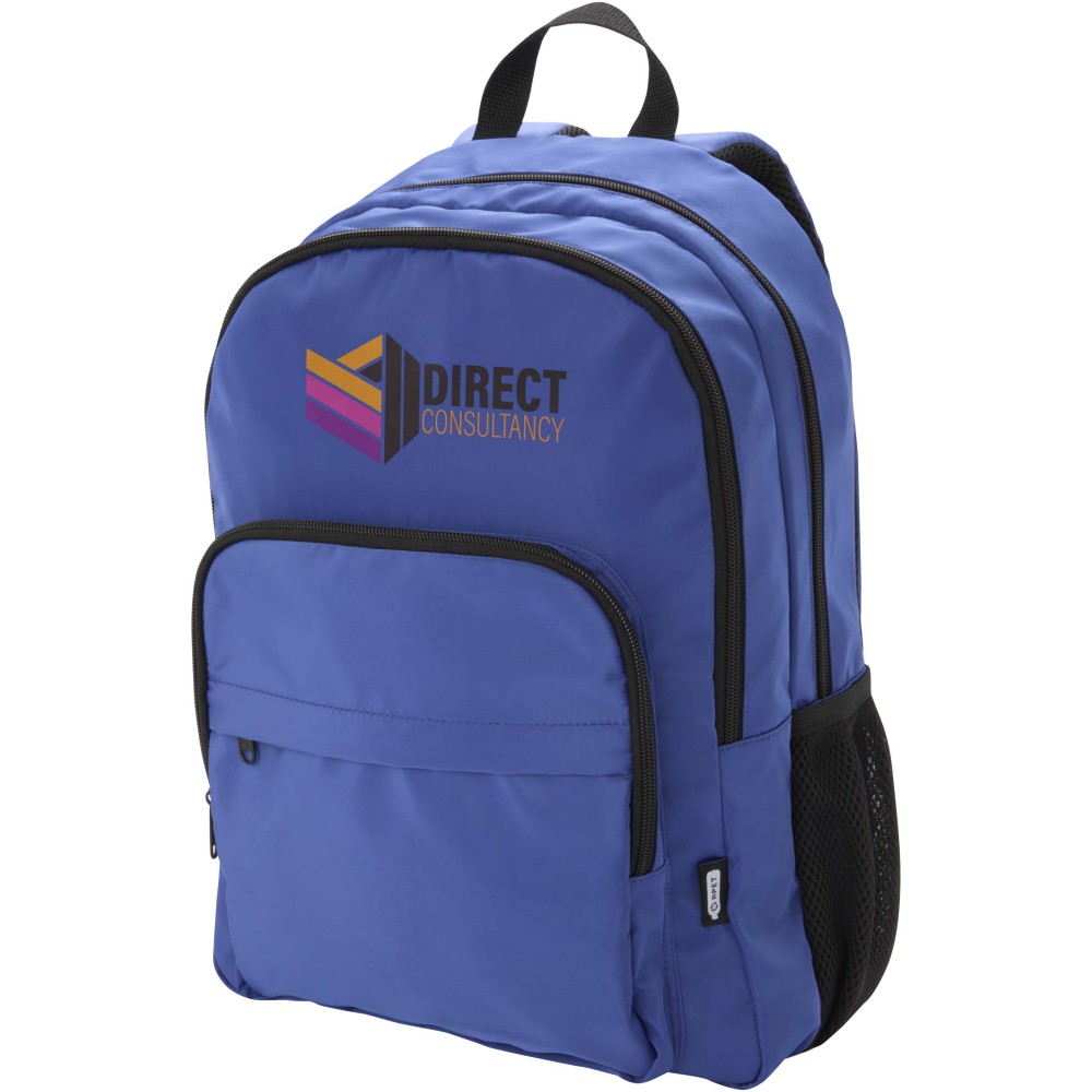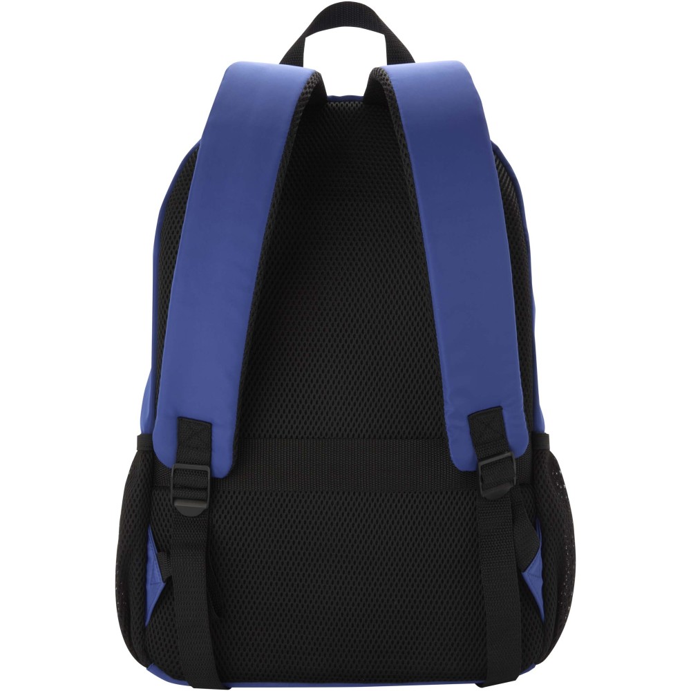 A Trend Plus hátizsák GRS tanúsítvánnyal rendelkező újrahasznosított, puha és gyűrődésálló anyagból készült, minőségi RPET béléssel. A hátizsák 15?-os laptoprekesszel, rendszerező rekesszel, cipzáras elülső zsebekkel, oldalsó rugalmas hálós zsebekkel, valamint légáteresztő hátpárnázattal és bőröndpánttal rendelkezik. Az állítható vállpántok maximális kényelmet biztosítanak. Űrtartalma: 20 liter. Teherbírás: akár 10 kg. PVC-mentes.