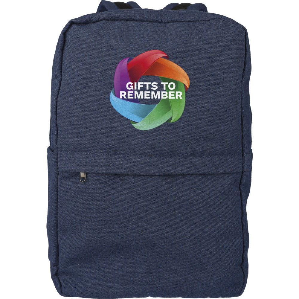 Hátizsák 330 g/m2 újahasznosított policotton anyagból, 210D poliészter béléssel. Egy nagy cipzáras rekesszel, párnázott 15"-es laptoptartó résszel, két belső és két külső rekesszel, oldalzsebbel és egy kicsi, cipzáras elsőzsebbel. Párnázott, állítható vállpánttal és hordozófüllel. Űrtartalom: 14 liter, teherbíró képesség: 13 kg. Címkét tartalmaz.