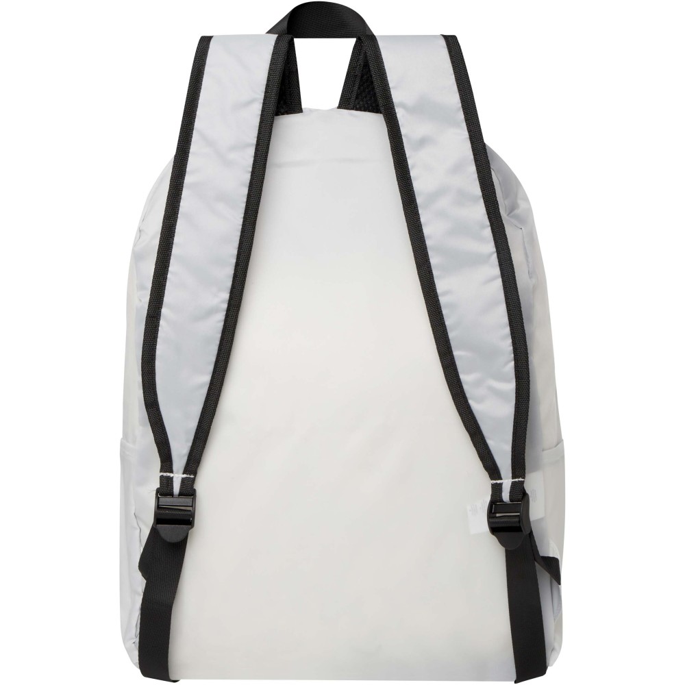 Ez a könnyű, mégis strapabíró hátizsák a kényelem és praktikusság jegyében készült, és könnyedén egy kompakt tasakba hajtható, amelyen szövettáska hurok található a kényelmes hordozás érdekében - ideális utazók, túrázók és a mindennapi használat számára. Cipzáras főrekesszel, cipzáras elülső zsebbel, két oldalsó zsebbel és állítható vállpántokkal rendelkezik. PVC-mentes újrahasznosított poliészterből készült. Űrtartalma: 15 liter.