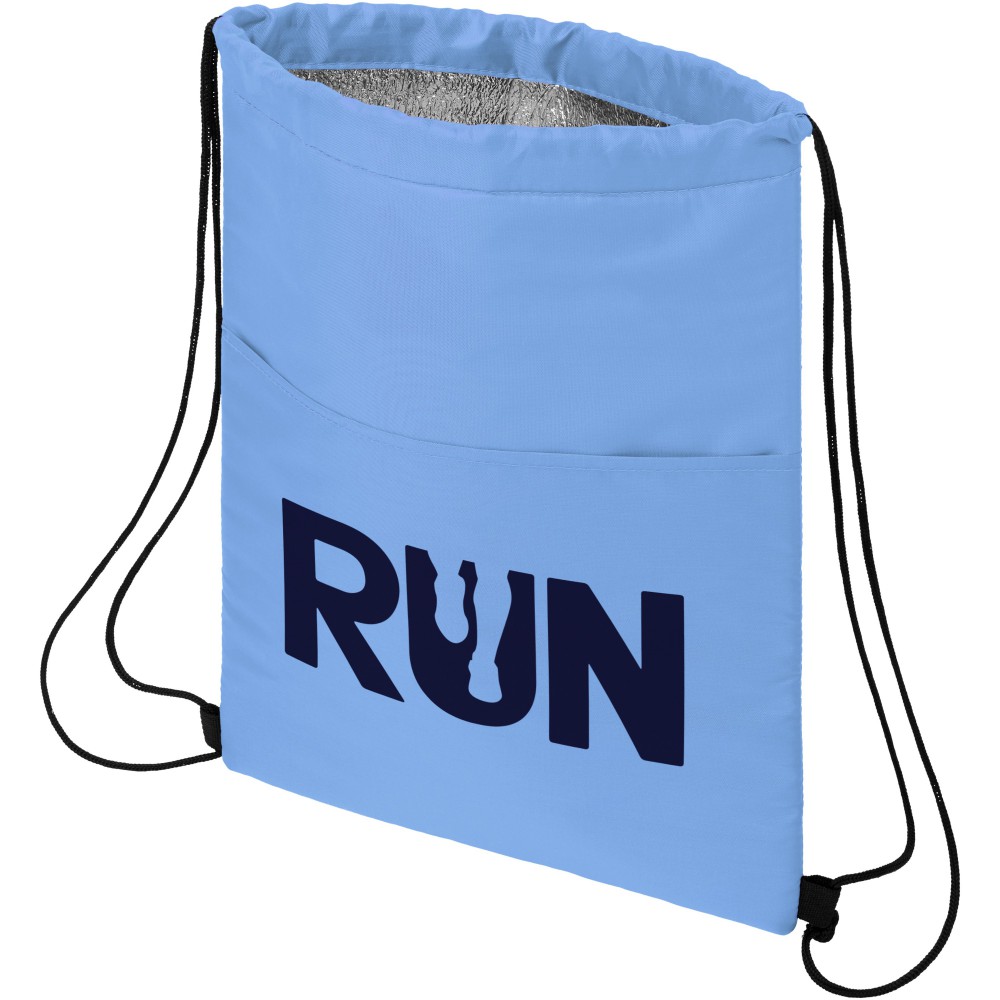 Hátizsák és hűtőtáska fekete húzózsinórral 12 doboz számára. Teherbírás 5 kg-ig. 210D poliészter.
