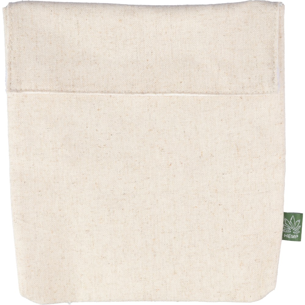 Kenderből készült szendvicstartó hőszigetelő PEVA béléssel, kender alapanyagot jelző logóval a címkéjén. Anyagminőség: 170 gr/m2.