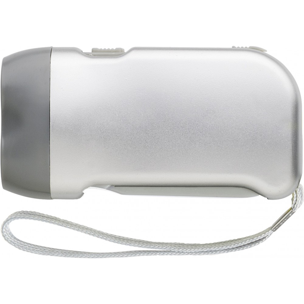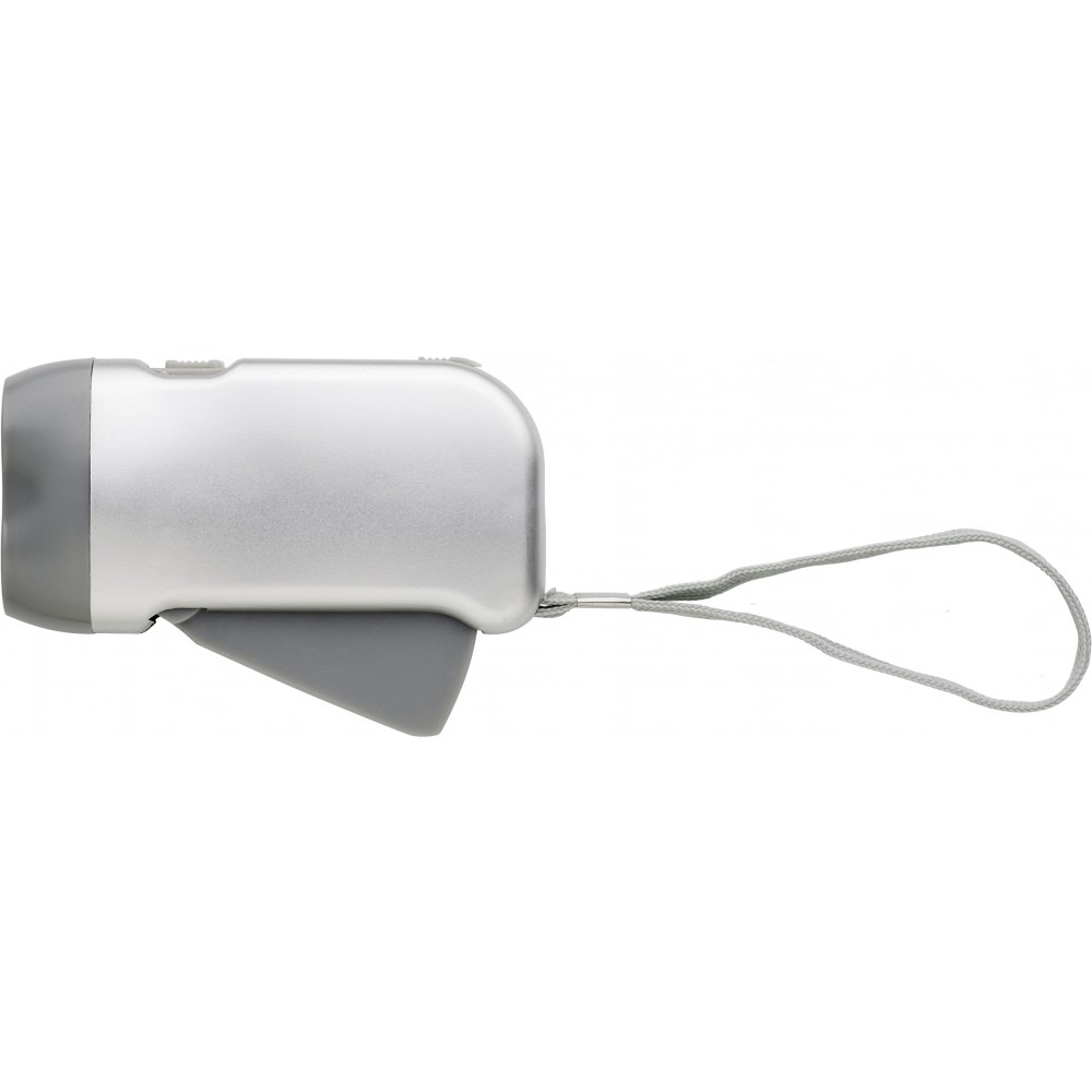 Műanyag dinamós zseblámpa, ezüst/szürke
