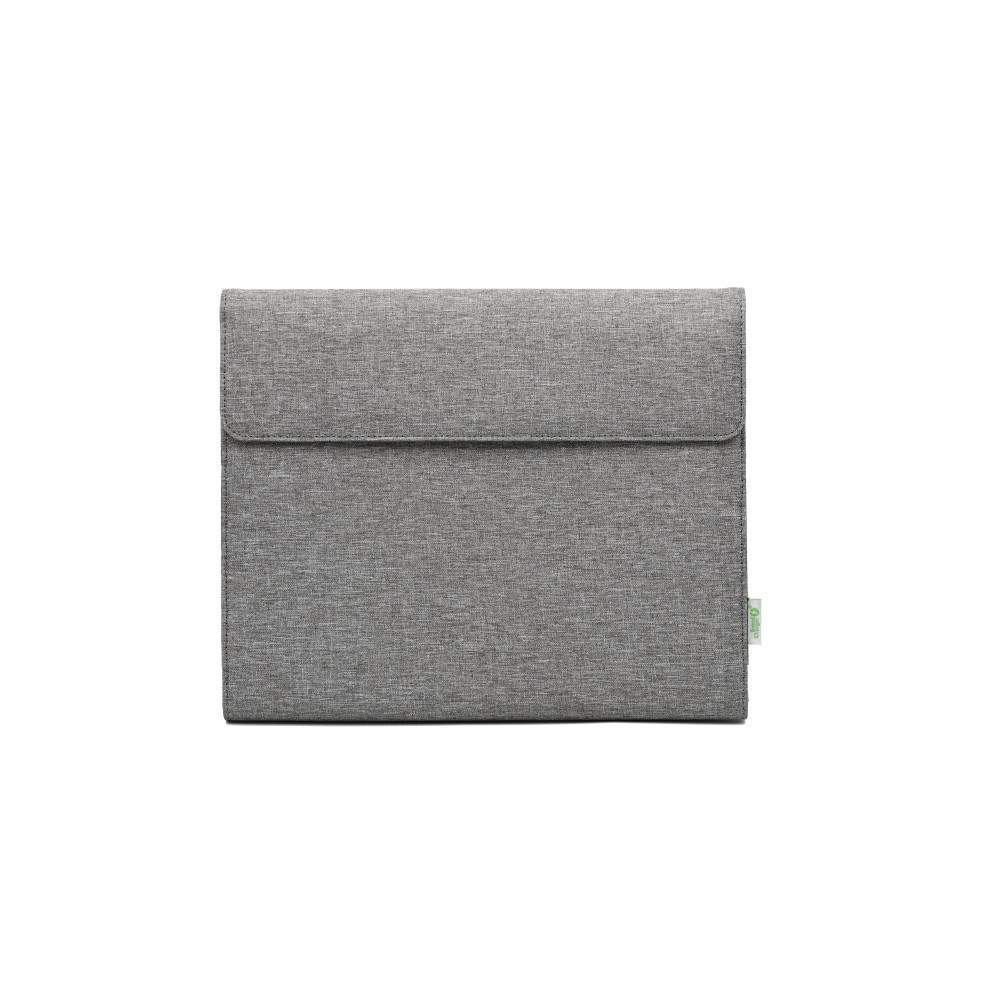A Noty Folio portfólió újrahasznosított PET-palackokból és papírból készült, és prémium minőségű üzleti mappa, amely tökéletes választás elfoglalt szakemberek számára. Helyet biztosít egy A4-es jegyzettömbnek, egy tablet/laptop zsebnek (legfeljebb 13?-os méretig), valamint külön rekeszeket kínál az alapvető tárgyak, például névjegykártyák tárolására. A mappa mágneses záródással, kemény borítóval és kihajtható asztali rendszerezővel van ellátva. Ideális gyakran utazó vagy úton lévő embereknek.