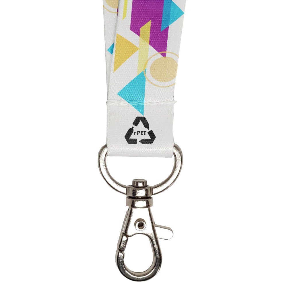 Szublimációs nyomással, teljes felületen dekorálható újrahasznosított PET (RPET) nyakpánt nikkelmentes cseppkarabinerrel. További rendelhető kiegészítők: vinil kártyatartó (RAM1161), proxy kártyatartó (RAM1162), biztonsági kioldó (RAM1172), oldható csat (RAM1122). Csak dekorálva rendelhető. A szalag hossza: 92 cm.