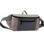 Poliészter 600D övtáska PU (210D) béléssel és PE hab hátlappal (3 mm). Nagy cipzáras rekesz a tetején és egy cipzáras zseb az elején. Állítható pánt csattal.