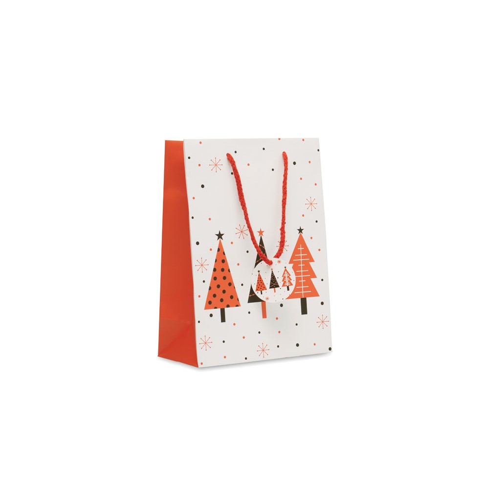 Közepes méretű, karácsonyi ajándéktasak papírból (30%-ban újrahasznosított), ajándék kísérő címkével. 150 g/m2 . FSC® -certified | FSC MIX, W5.3, FSC-C213206