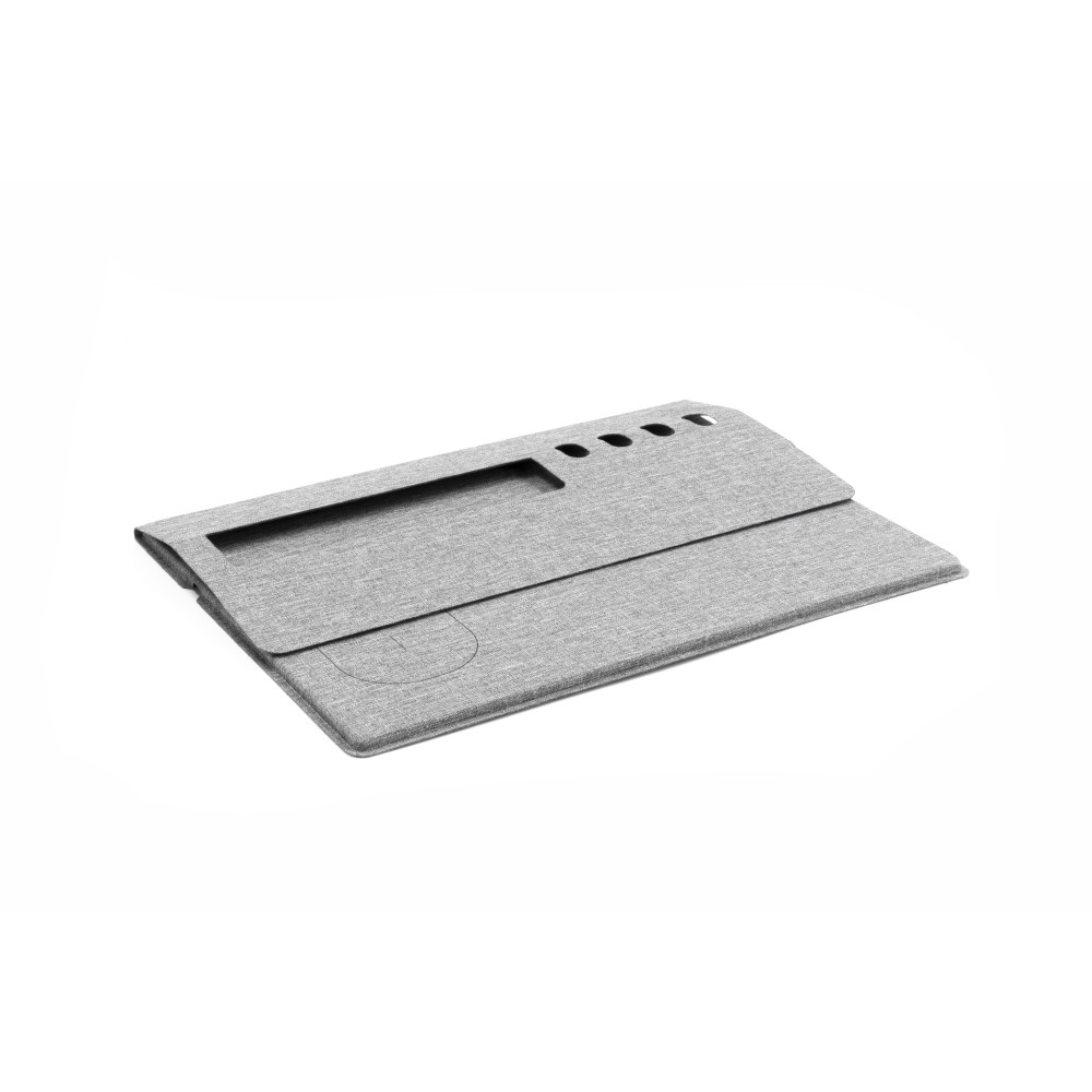 Alakítsa át munkaterületét az Evopad segítségével! Ez az újrahasznosított PET-palackokból készült többfunkciós eszköz vezeték nélküli töltőt, egérpadot, telefontartót és tolltartót kombinál egyetlen kompakt kialakításban. Akár az irodában, akár otthon, akár egy kávézóban tartózkodik, az Evopad rendszerezetten, rendezetten és teljesen feltöltve tartja a munkahelyét, bárhová is megy.
