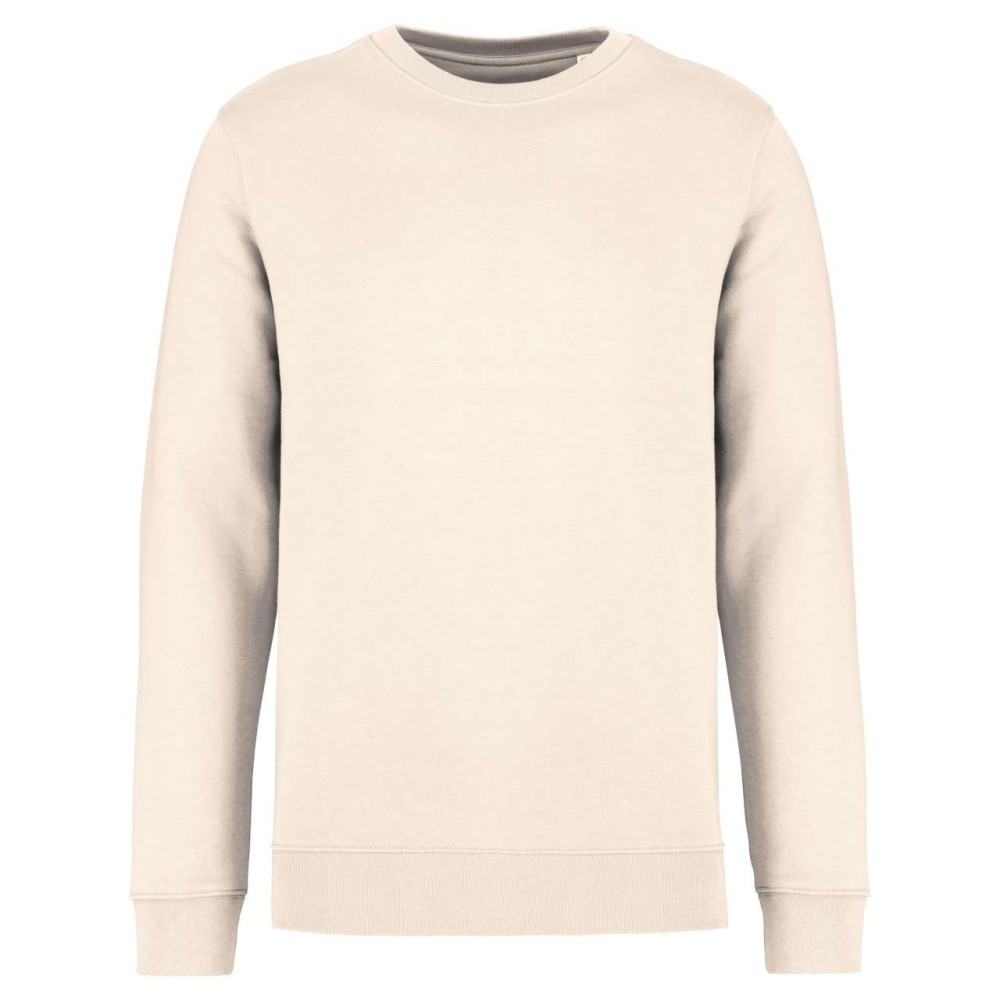 85 % bio, fésült pamutból és 15 % újrahasznosított poliészterből készült. Unisex. Egyenes szabás. LSF (Low Shrinkage Fleece: előzsugorított polár). Kerek nyakkivágás. Félhold alakú. Méretcímke organikus pamut és újrahasznosított poliészter logóval. 1x1 bordás nyakpasszé, alsó szegély és kézelő. Duplaöltés a kézelőn, karöltőben és kézelőn. Egyszeres felülvarrás a nyakkivágáson. Belső szalagozott nyakrész. A nyakrészen nincs márkajelzés, csak méretcímke a könnyebb dekorálás érdekében. A ruhadarabhoz kartonpapírból készült ismertetővel, amely felsorolja a felhasznált környezetbarát anyagokat. OEKO-TEX N CQ1007/7 STANDARD 100 tanúsítvánnyal rendelkezik. IFTH. 350 g/m2.