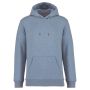 85 % bio, fésült pamutból és 15 % újrahasznosított poliészterből készült. Unisex. Egyenes szabás. Méretcímke organikus pamut és újrahasznosított poliészter logóval. LSF (Low Shrinkage Fleece: előzsugorított polár) kezelés. Kapucni. 1x1 bordás szegély és kézelő. Duplatűzés a kézelőn, a szegélyen és a nyaknál. Szalagozott nyakbelső hátul. Bélelt kapucni, a nyaknyíláson nincs felülvarrás, csak egy megkötés, hogy a húzózsinór a felső részen maradjon. Kerek húzózsinór a kapucnin fém véggel. Kenguru zseb. Nincs márkajelzés a nyakrészen, csak egy méretcímke a könnyű dekorálás érdekében. Karton függőcímkével érkezik, amely felsorolja a termék előállításához felhasznált környezetbarát anyagokat. Organikus pamutfonal. OEKO-TEX N CQ1007/7 STANDARD 100 tanúsítvánnyal rendelkezik. IFTH. 350 g/m2.
