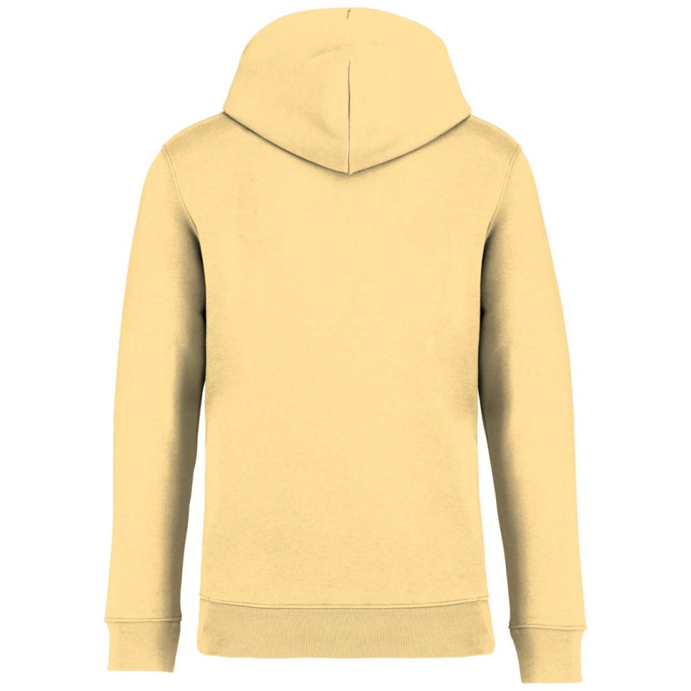 85 % bio, fésült pamutból és 15 % újrahasznosított poliészterből készült. Unisex. Egyenes szabás. Méretcímke organikus pamut és újrahasznosított poliészter logóval. LSF (Low Shrinkage Fleece: előzsugorított polár) kezelés. Kapucni. 1x1 bordás szegély és kézelő. Duplatűzés a kézelőn, a szegélyen és a nyaknál. Szalagozott nyakbelső hátul. Bélelt kapucni, a nyaknyíláson nincs felülvarrás, csak egy megkötés, hogy a húzózsinór a felső részen maradjon. Kerek húzózsinór a kapucnin fém véggel. Kenguru zseb. Nincs márkajelzés a nyakrészen, csak egy méretcímke a könnyű dekorálás érdekében. Karton függőcímkével érkezik, amely felsorolja a termék előállításához felhasznált környezetbarát anyagokat. Organikus pamutfonal. OEKO-TEX N CQ1007/7 STANDARD 100 tanúsítvánnyal rendelkezik. IFTH. 350 g/m2.