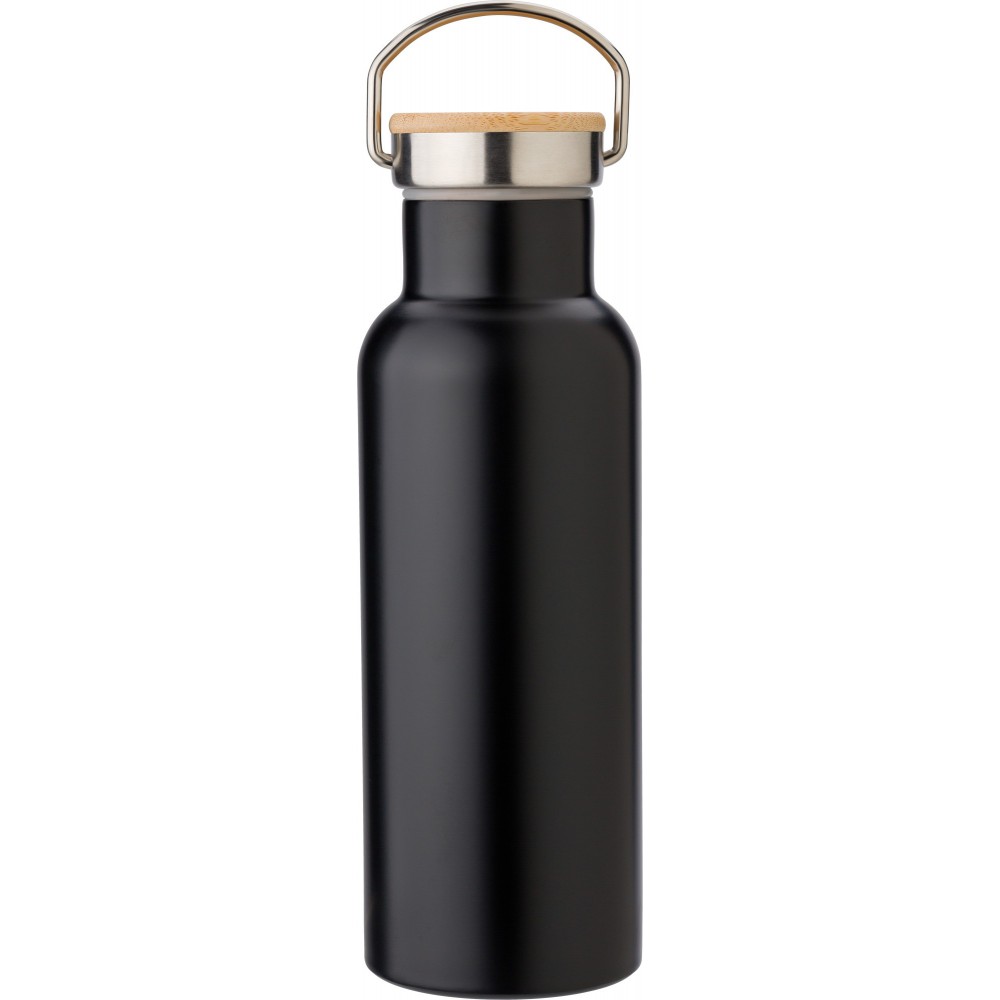 Rozsdamentes acél, duplafalú palack bambuszbetétes, csavaros kupakkal. Űrtartalom: 500 ml.