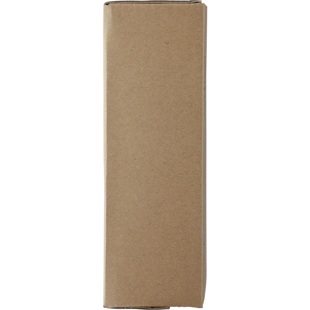 Újrahasznosított rozsdamentes acélból készült 500 ml-es palack PP kupakkal és alumínium karabinerrel. A kulacs a benne tárolt italt 8 órán át melegen, 12 órán át pedig hidegen tartja. Az ezüst szín kivételével külső felülete matt. Az újrahasznosított anyagra utaló logó a palackra van gravírozva. Mosogatógépben nem tisztítható. Csomagolása barna papírdoboz.