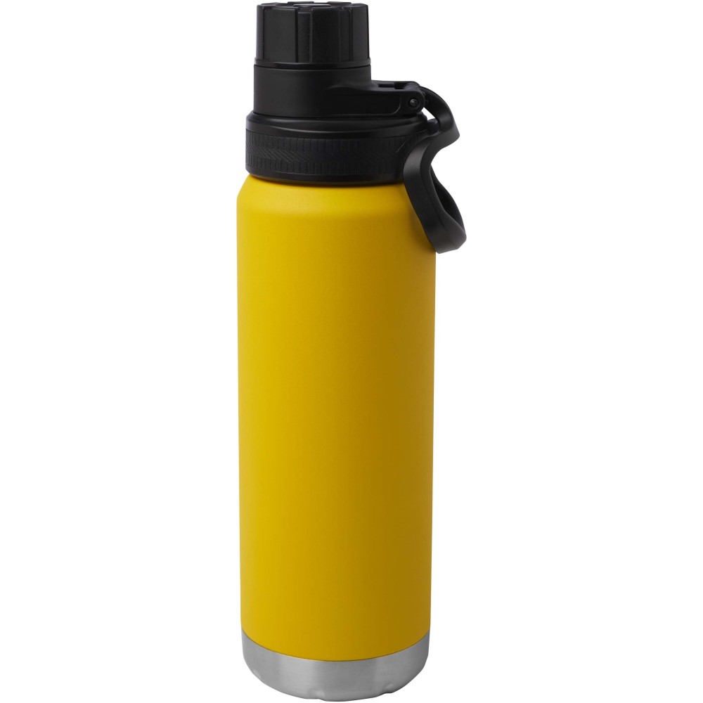 RCS tanúsítvánnyal rendelkező, rozsdamentes acélból készült, dupla falú, rézvákuum-szigetelésű kulacs csavaros, szivárgásmentes fedéllel. Széles nyílása megkönnyíti a töltést és a tisztítást, a fedélbe integrált hordozófül pedig praktikus szállítást biztosít. Szénsavas italokhoz is alkalmas. Külső felületén tartós porszórt bevonat található. Újrahasznosított karton díszdobozban kerül átadásra. Űrtartalom: 700 ml.