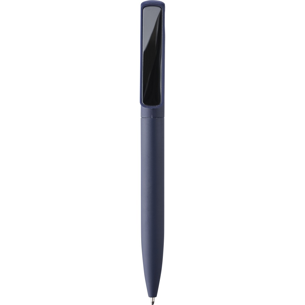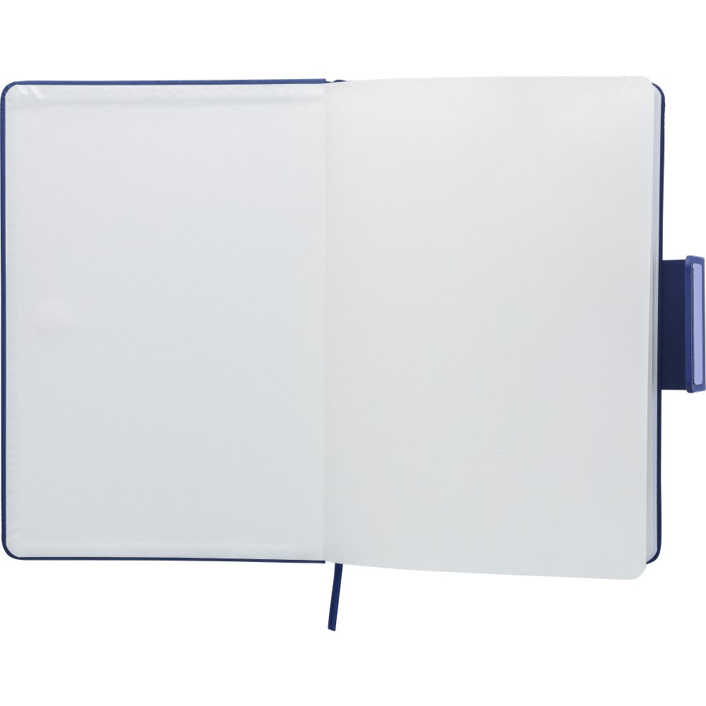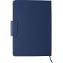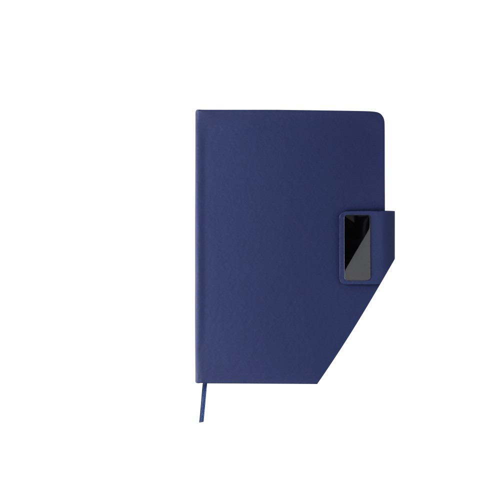 Karton ajándékkészlet. Tartalma: újrahasznosított alumínium csavaros golyóstoll kék tintával és újrahasznosított PU jegyzetfüzet. A jegyzetfüzet 80 lapos 70 g/m2-es vonalas papírral, és szalagos könyvjelzőt és fém mágneses zárat tartalmaz fegyveracél gravírozott lemezzel. Mindkét termék újrahasznosított logóval van ellátva: dombornyomva a jegyzetfüzeten és gravírozva a tollon.