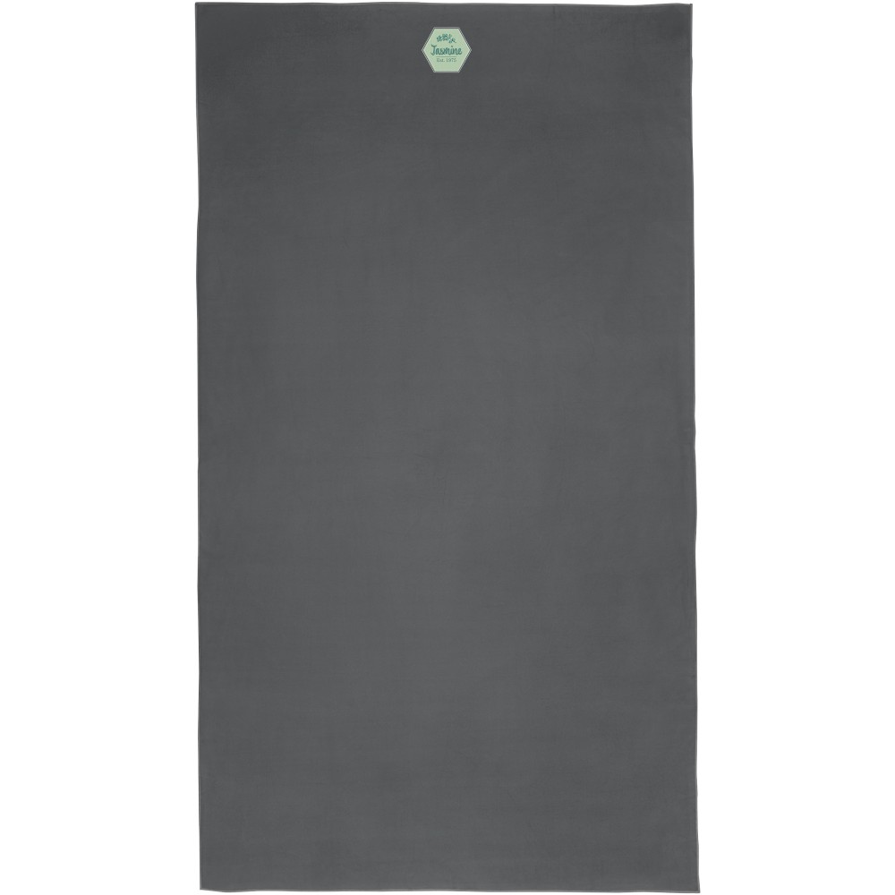 A Pieter sporttörülköző nagyon jó nedvszívó, könnyű, gyorsan szárad, az anyaga pedig tartós és rendkívül puha. Ha a törölközőt összehajtjuk és gumiszalaggal rögzítjük, kis méretűre csomagolható, így alkalmas arra, hogy magunkkal vigyük az edzőterembe, uszodába, vagy ha hátizsákos túrára, esetleg kempingezésre megyünk. A törülköző 100 x 180 cm méretű, 90% GRS újrahasznosított poliészterből és 10% nejlonból készült, és 40 °C-on mosható mosógépben. Újrahasznosított PET műanyagból készült tároló tasakkal (25 x 8,5 cm) szállítjuk.