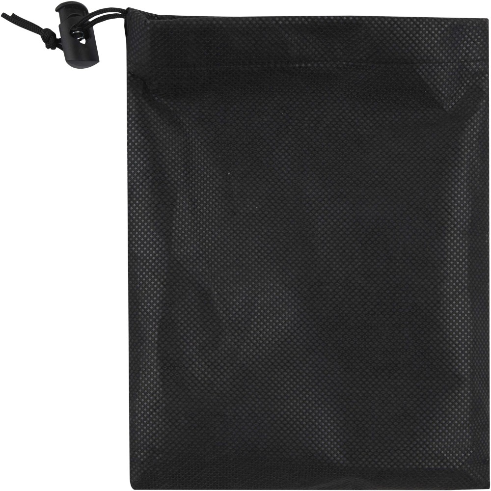 A Lucas RPET sporttörölköző 100%-ban újrahasznosított poliészterből készült, puha és nedvszívó felületet biztosít, így ideális edzéshez vagy szabadtéri tevékenységekhez. 140 g/m2 súlyával a tartósságot és a könnyed kényelmet ötvözi. A törölköző praktikus műanyag pánttal van ellátva, amellyel mind a törölközőt, mind a tasakot biztonságosan rögzítheted, megkönnyítve a hordozást és tárolást. A csomag egy tasakkal (16 x 21 cm) is rendelkezik, amely szintén 100%-ban újrahasznosított poliészterből készült. A törölköző mérete: 70 x 140 cm.
