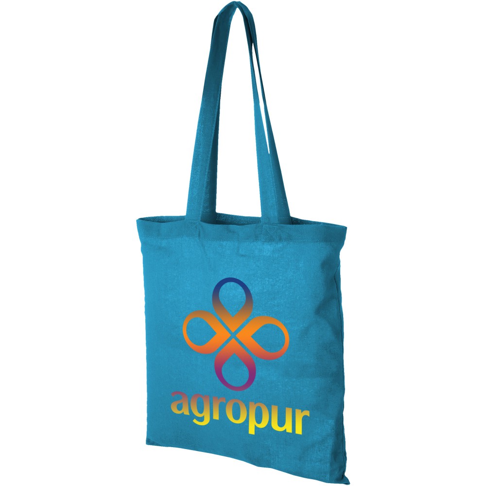 A Carolina táska könnyű és pénztárcabarát, így kiválóan alkalmas reklámhordozó rendezvényeken, konferenciákon vagy kiállításokon. A nagy fő rekesz elegendő helyet biztosít a könnyű tárgyak tárolására, a 30 cm-es vállpántok pedig megkönnyítik a táska szállítását. Fülek magassága 30 cm. 100 g/m2 pamut.