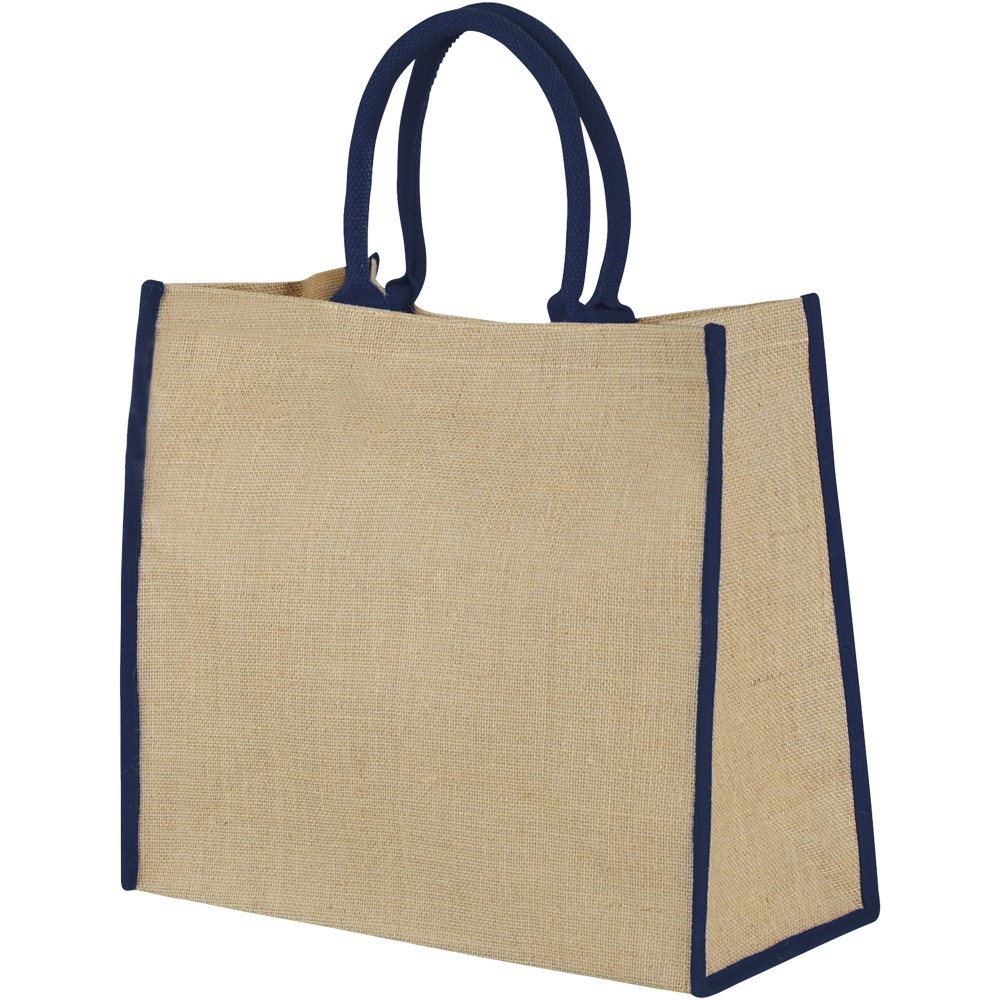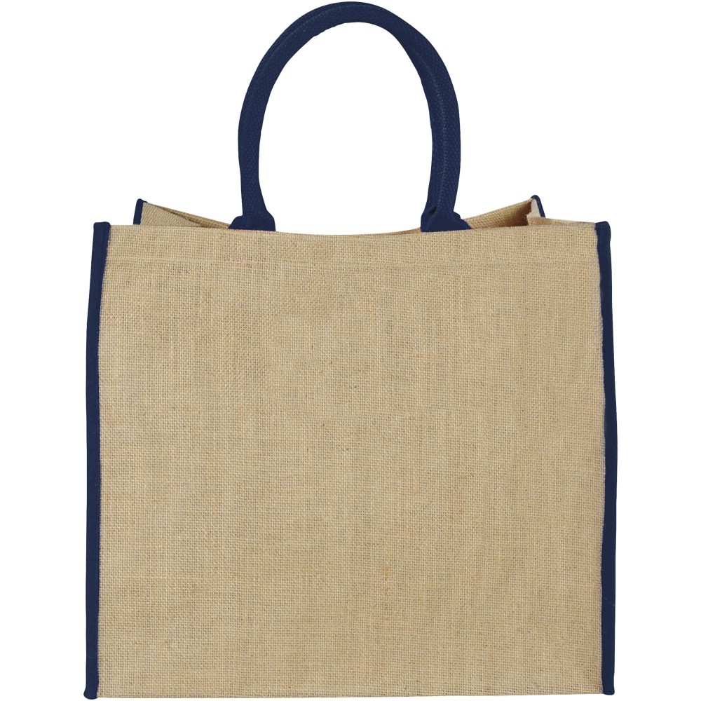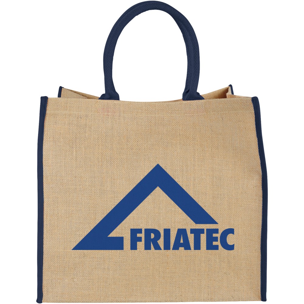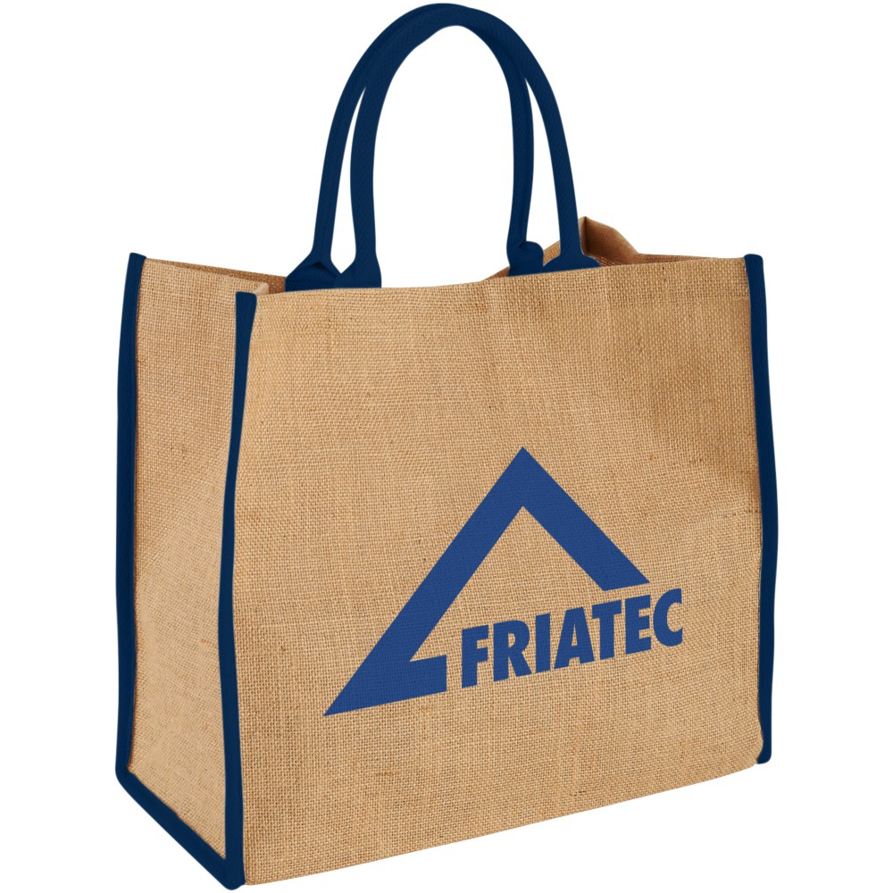 The Large juta bevásárlótáska tépőzáras kialakítással. A lehajtható fülek magassága 17 cm. Megjegyzés: finom grafikát vagy szöveget nem, csak vastag, erős nyomatott lehet az anyagon alkalmazni. Juta.