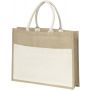 Bevásárlótáska juta anyagból, műanyag hátrésszel, vászon első zsebbel, puha, párnázott hordozófüllel.