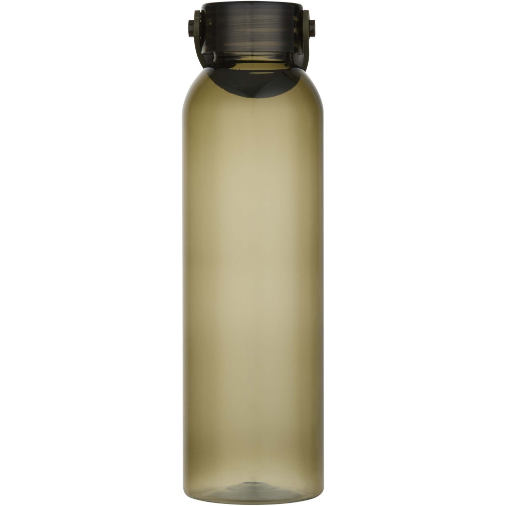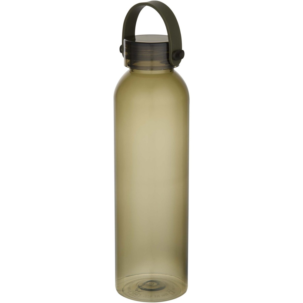 RCS tanúsítvánnyal rendelkező RPET-ből készült kulacs, praktikus szilikon hordozófüllel. Megfelel az EFSA által jóváhagyott PET-újrahasznosítási eljárásnak. Űrtartalom: 630 ml.